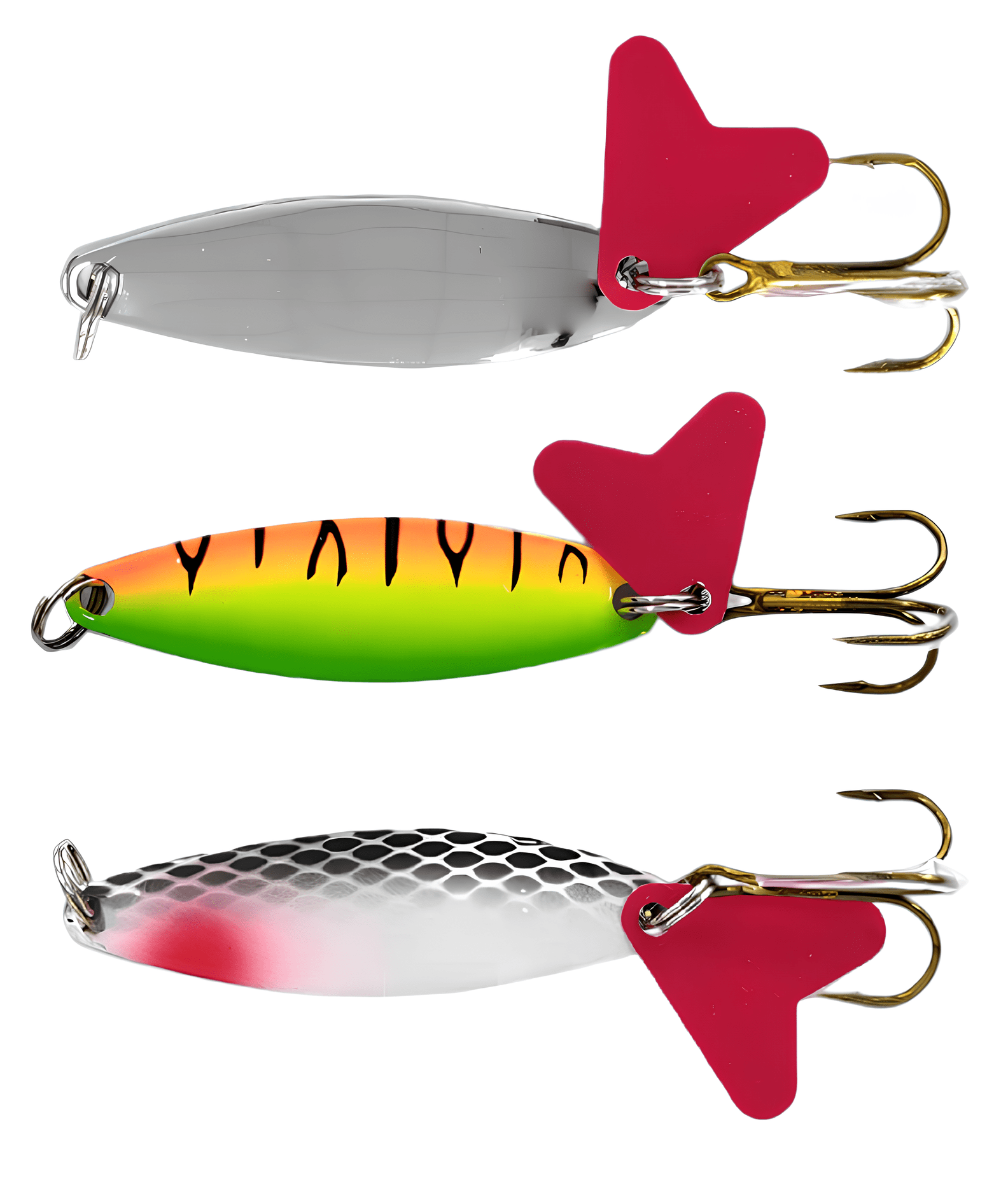 Колеблющиеся блесны отличаются разнообразием форм, но на некоторых из них можно увидеть дополнительные элементы, такие как плавники. Эти плавнички служат для стабилизации игры приманки как в поперечном, так и в продольном направлении, уменьшая вероятность срыва во вращение при активной проводке.
