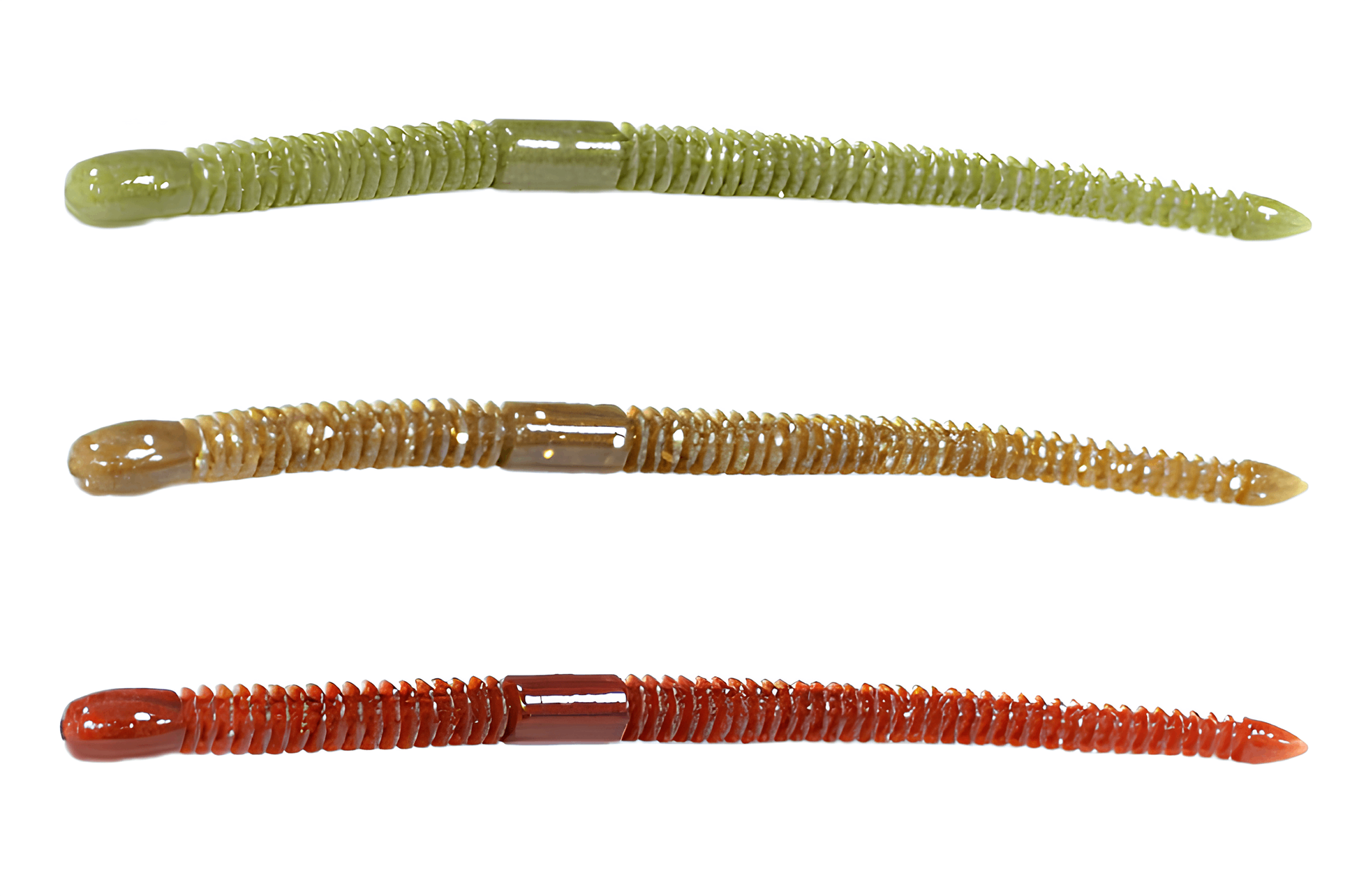 Силиконовые черви — представляют собой реалистичные имитации различных видов червей, личинок и пиявок. Модели различаются по толщине, длине, оттенку и текстуре поверхности: могут быть гладкими или рельефными. У некоторых вариантов есть выраженный хвост. Активные черви оснащены хвостиком, как у твистеров, что обеспечивает интенсивную игру при плавной и спокойной проводке. Пассивные черви, лишенные хвоста, не совершают самостоятельных колебаний и приводятся в движение действиями рыбака. Для изготовления червей используется как съедобный, так и несъедобный силикон, что позволяет рыболовам подобрать оптимальный вариант для конкретных условий.