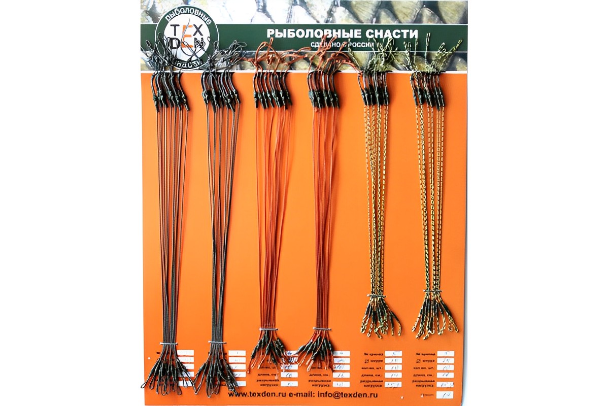 Некоторые производители не только указывают материал, из которого изготовлен поводок, но и дают рекомендации по ловле определённых видов хищников и наиболее эффективным приманкам.